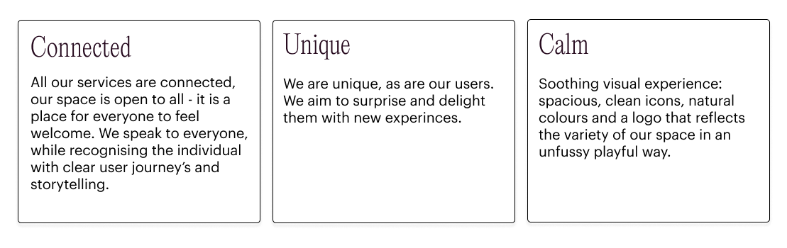 With this in mind I wanted to have design principles that would set a foundation on which to base design decisions, that reflected our users unique qualities and minimised this feeling of cognitive overload that users talked about in the research.