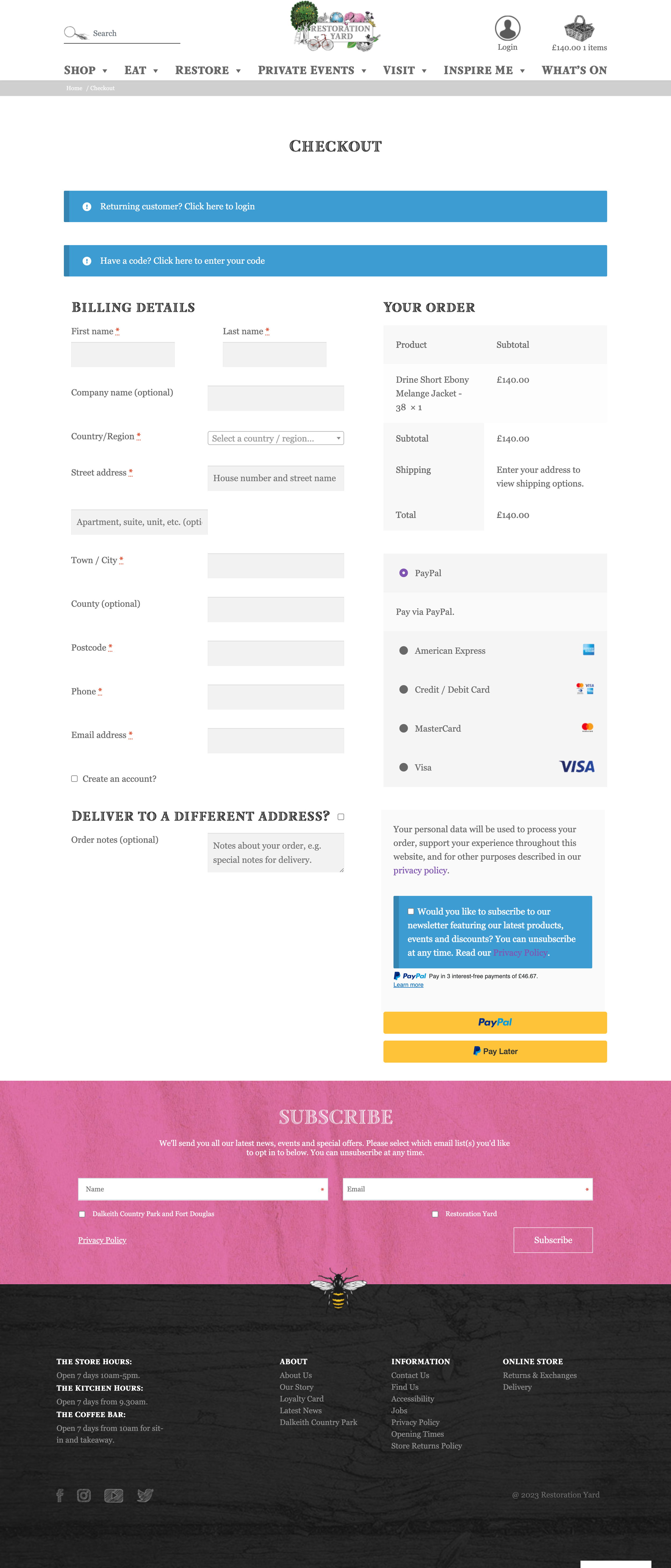 While the main thing I wanted to test was the shopping flow, I created additional pages to give a flavour of what else is in store at the Restoration Yard.